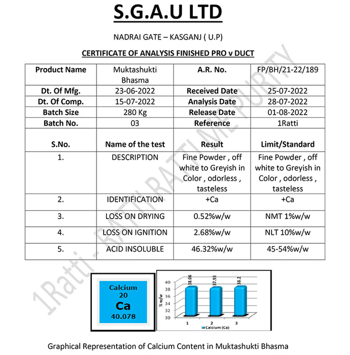 1Ratti Muktashukti Bhasma It Is primarily used to manage digestive disorders. It is an Ayurvedic medicine used to manage gastritis-related ailments, including belching, bloating and constipation. It effectively provides relief from heartburn and improves overall digestive health.