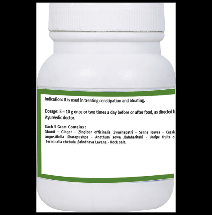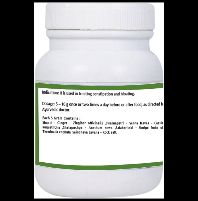 Composition : Shunti - Ginger- Zingiber officinalis, Swarnapati- Senna leaves- Classia angustifolia, Shatapusha- Anethum Sowa, Balaharitaki- Unripe of fruits of Terminalia chebula, Saindhava- Rock salt