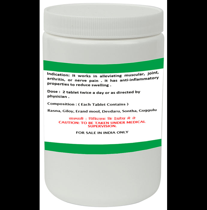 1ratti Rasnadi Guggulu is an ayurvedic medicine that helps in providing relief from different types of pain. It also has a laxative effect to destroy refuge deposits. These tablets prevent many diseases caused by a disturbed vayu or vata.Key Ingredient:
