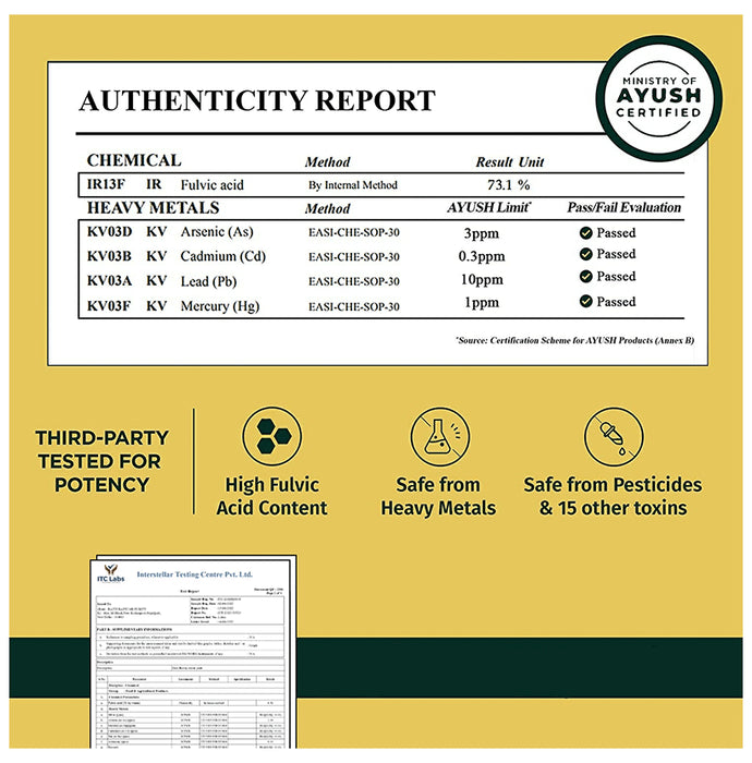 1ratti Shilajit Tablet is a natural dietary supplement containing powerful antioxidants that slow ageing, prevent damage from free radicals, and manage iron deficiency. These tables have unique biological properties that fight chronic fatigue, promote energy and restore the body's vitality. Daily consumption of Shilajit tablets keeps stress and anxiety away, increases longevity, rejuvenates the body, improves joint flexibility and regulates blood sugar levels. These improve libido, support immunity and are helpful against cognitive problems like dementia.