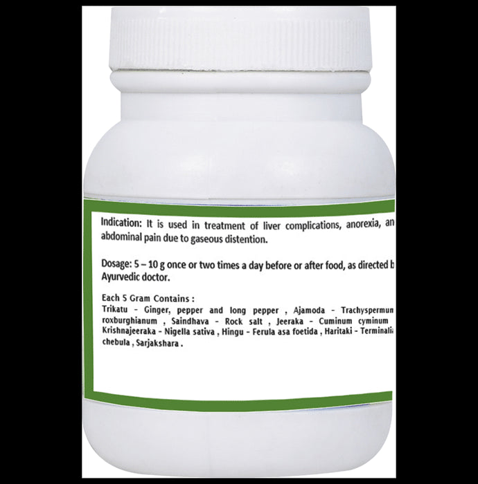 Composition : Trikatu, Ajamoda, Saindhava, Jeeraka, Krishnajeeraka, Hing, Haritaki