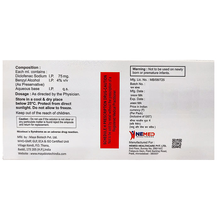 Composition : Diclofenac (75mg/ml)