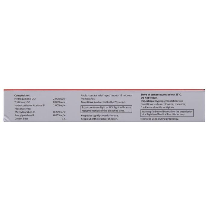 Composition : Hydroquinone (2% w/w) + Tretinoin (0.05% w/w) + Hydrocortisone (1% w/w)