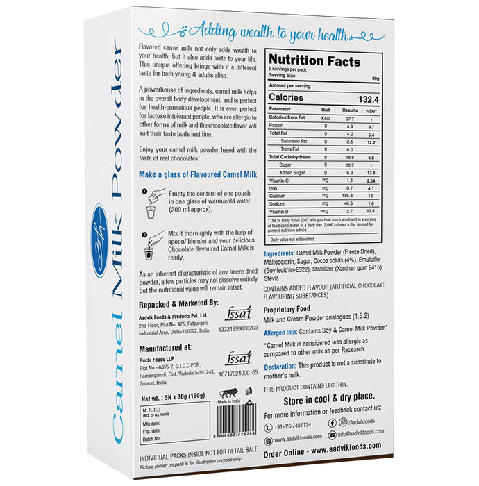 Aadvik Camel Milk Powder Sachet (30gm Each) Chocolate Freeze Dried