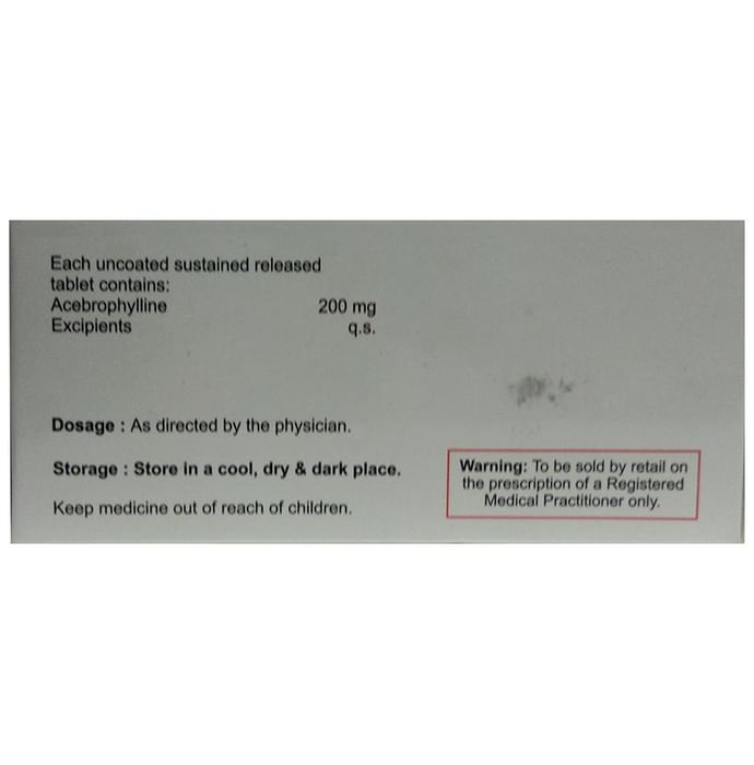 AB-Gam SR Tablet is used to treat and prevent symptoms of asthma, bronchitis, and chronic obstructive pulmonary disorder (a lung disorder in which flow of air to the lung is blocked). It helps in relaxing the muscles of the air passages, thus widening it and making it easier to breathe. AB-Gam SR Tablet can be taken with the food in evening. Take it at the same time every day to get the most benefit. The dose and how often you take it depends on what you are taking it for. Your doctor will decide how much you need to improve your symptoms. Take this medicine for as long as it is prescribed for you. Do not miss even a single dose, if in any case, you missed a dose, take it as soon as you remember or better to skip the missed dose and continue with regular dosing. It does not work immediately or prevent the already started breathing trouble, hence always carry your medical inhaler with you for an emergency.The most common side effects of this medicine include abdominal discomfort, abdominal distension, vomiting, abdominal pain, diarrhea, constipation, and heart burn. If these bother you or appear serious, let your doctor know. There may be ways of reducing or preventing them. Generally, it is advised not to consume alcohol or do not smoke while on treatment.Before taking this medicine, let your doctor if you have kidney or liver disease or if you have heart-related problems. Your doctor should also know about all other medicines you are taking as many of these may make this medicine less effective or change the way it works. Inform your doctor if you are pregnant or breastfeeding before starting the treatment.