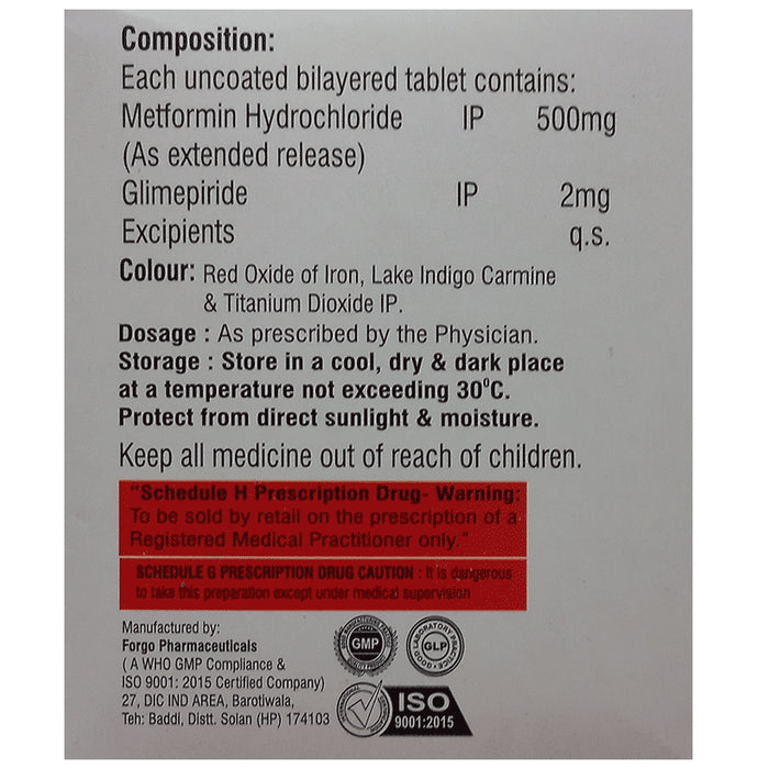 Composition : Glimepiride (2mg) + Metformin (500mg)