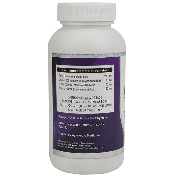 Composition : Tulsi (Ocimum Sanctum) leaf,Dalchini (Cinnamomum zeylanicum) bark,Sunthi (Zingiber officinale) rhizome,Krishna marich