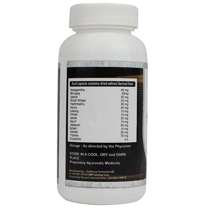Composition : Ashwagandha,Bhringraj,Jaiphal,Shudh Shilajit,Yashtimadhu,Arjuna,Lawang,Chitrak,Jeerak,Saunf,Shatavari,Amalki,Haritaki,Triphala