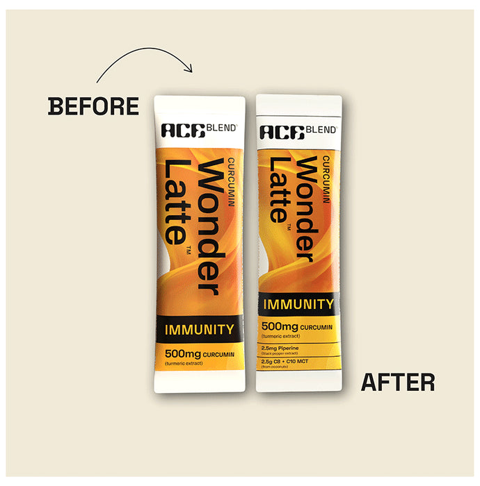 Ace Blend Curcumin Wonder Latte Sachet curcumin is the wonder ingredient in Wonder Latte. It is a blend of pure curcumin extract with piperine and MCT for effective absorption (5x more curcumin than haldi milk, with up to 2000% more absorption). This antioxidant heavy, anti-inflammatory potion acts as an immunity powerhouse.