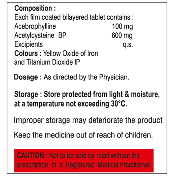 Composition : Acebrophylline (100mg) + Acetylcysteine (600mg)