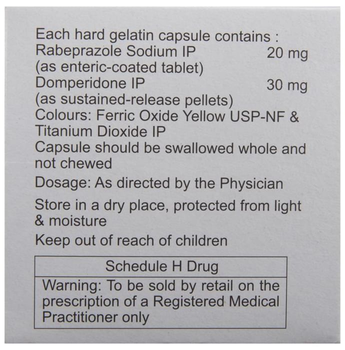 Composition : Domperidone (30mg) + Rabeprazole (20mg)