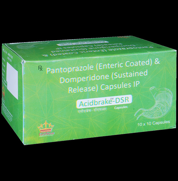 Acidbrake-DSR Capsule is a prescription medicine used to treat gastroesophageal reflux disease (Acid reflux), dyspepsia (indigestion), and gastritis. It helps treat the conditions by reducing the amount of acid in the stomach thereby relieving symptoms of acidity such as heartburn, stomach pain, or irritation. Acidbrake-DSR Capsule also neutralizes the acid in the stomach and promotes easy passage of gas to reduce stomach discomfort. It is taken without food in a dose and duration as advised by the doctor. The dose you are given will depend on your condition and how you respond to the medicine. You should keep taking Acidbrake-DSR Capsule for as long as your doctor recommends. If you stop treatment too early your symptoms may come back and your condition may worsen. Let your healthcare team know about all other medications you are taking as some may affect, or be affected by this medicine.The most common side effects of Acidbrake-DSR Capsule are diarrhea, vomiting, stomach pain, flatulence, dryness in the mouth, and headache. Most of these are temporary and usually resolve with time. Contact your doctor straight away if you are at all concerned about any of these side effects. This medicine may cause dizziness and sleepiness, so do not drive or do anything that requires mental focus until you know how this medicine affects you. Avoid drinking alcohol while taking Acidbrake-DSR Capsule as it can worsen your sleepiness. Lifestyle modifications like having cold milk and avoiding hot tea, coffee, spicy food, or chocolate can help you to get better results.Before you start taking this medicine it is important to inform your doctor if you are suffering from kidney or liver disease. You should also tell your doctor if you are pregnant, planning pregnancy, or breastfeeding.