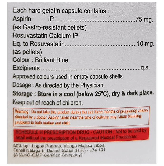 Composition : Rosuvastatin (10mg) + Aspirin (75mg)