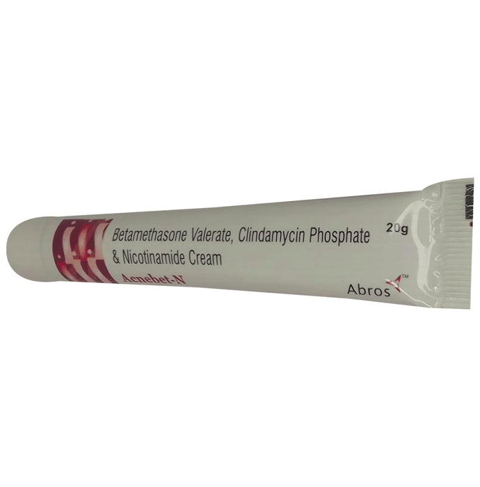 Acnebet-N Cream is a combination of three medicines used for the treatment of acne. It kills the bacteria causing the conditions and helps in reducing the inflammation and redness in the skin. It also provides essential nutrients to the skin. Acnebet-N Cream may be used alone or with other acne treatments. You should use it as per your doctor's advice. The leaflet that comes with the product will also give instructions which you should read to get the most out of this medicine. You should normally wash and dry the affected area before applying a thin layer of the medicine. You should not apply it to damaged or broken skin and avoid contact with your mouth, eyes, and nose.It may cause burning, irritation, itching, and redness at the site of application. It may also cause dry skin in some people. These are not usually serious and fade away with time. However, if they bother you or do not go away with time, tell your doctor.You should tell your doctor if you have any other skin conditions or if you are taking any other medicines, especially those applied to the skin. It may not be suitable if you have very sensitive skin. Ask your doctor about using this product if you are pregnant or breastfeeding.