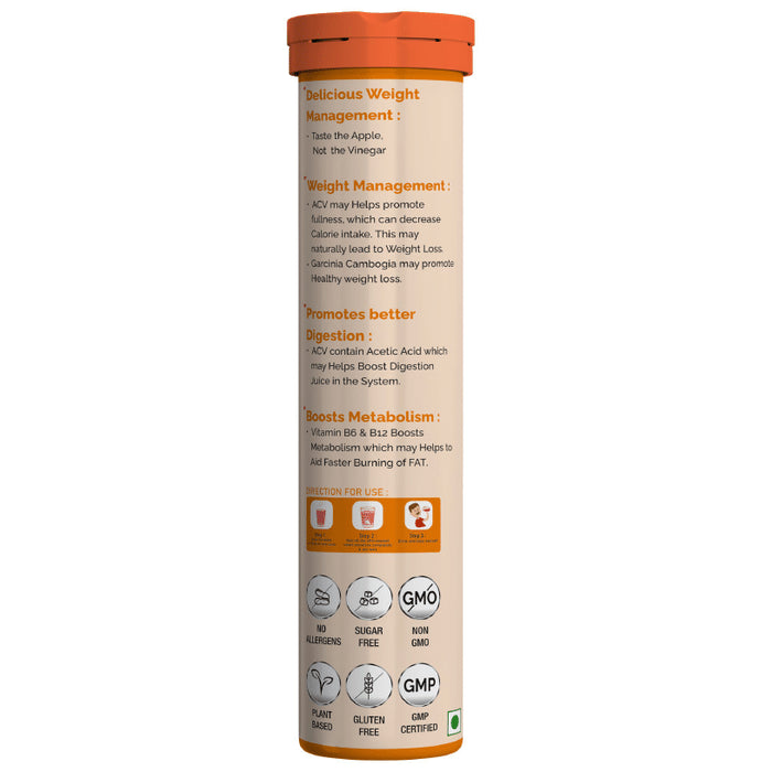 ACV-PIX Apple Cider Vinegar 500mg & Garcinia Cambogia Effervescent Tablet One of the oldest kids on the block for weight management, metabolism control, and heart health, apple cider vinegar has a plethora of benefits. Our plant-based ACV effervescents pack all of those benefits and more into a tablet, giving you a delicious hack for overall well-being! Apple vinegar can help support a healthy immune system, aid in maintaining a healthy weight, deliver prebiotics, and help you maintain normal glucose levels. A tasty way to be healthy: Apple cider vinegar tablets come in a delicious watermelon flavour. Apple cider vinegar and mother vinegar effervescent tablets are better to use since they are more tasty than other ACV supplements like gummies, capsules, and liquid.