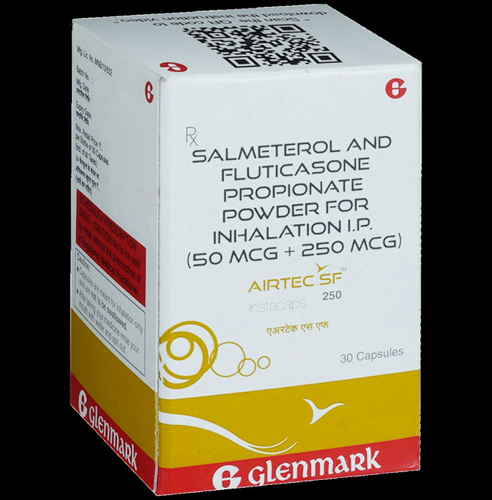 Airtec SF 250 Instacap is a combination of two medicines that opens the airways and makes it easier to breathe. It is used in the treatment of asthma (wheezing and shortness of breath) and chronic obstructive pulmonary disorder (a lung disorder in which the flow of air to the lungs is blocked). Your doctor will tell you how often you need to use your inhaler. The effect of this medicine may be noticeable after a few days but will only reach its maximum after a few weeks. This medicine must be used regularly to be effective, so go on taking it even if you don't have any symptoms. That means it’s doing its job. If you stop taking it your asthma and chronic obstructive pulmonary disorder (COPD) may get worse. It should not be used to relieve sudden asthma attacks. If an asthma attack occurs, use your quick-relief inhaler (reliever). To get the benefit from this medicine you need to make sure you get your inhaler technique right, otherwise, it does not work as well.The most common side effects are nausea, vomiting, respiratory tract infection, fungal infections in the mouth, headache, hoarseness of voice, sore throat, cough, musculoskeletal (bone, muscle, or joint) pain, and increased heart rate. If you get there, do not stop taking it but do talk to your doctor. You can help prevent some of these symptoms by rinsing your mouth and throat with water or brushing your teeth after using your inhaler. There are other, rarer side effects that can be serious. Talk to your doctor if you're worried about them. In general, you should be trying to avoid situations that make your asthma worse (your triggers) and try not to smoke.Ask your doctor whether it’s safe to take this medicine if you're pregnant or breastfeeding. Before taking it, you should tell your doctor if you have any kidney or liver diseases so that your doctor can prescribe a suitable dose for you.