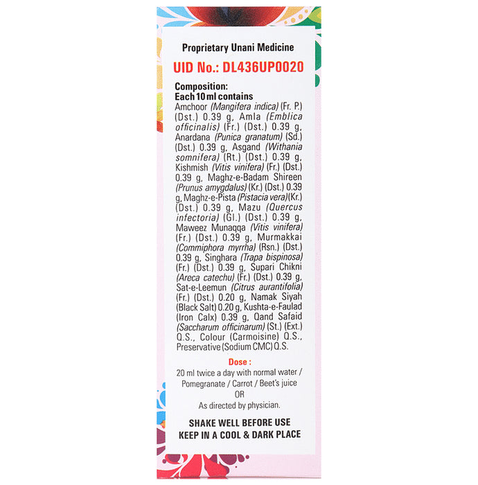 Composition : Amchoor,Aamla,Anardana,Asgand,Kishmish,Badam,Pista,Munakka