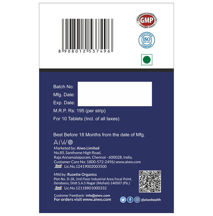 AIWO L-Car Tablet is a health supplement that helps enhance fatty acid oxidation and reduces free radical formation and helps prevent exercise fatigue, muscle weakness etc. It regulates cellular growth, red blood cell formation, and protein synthesis. It also helps prevent nerve damage by enhancing the formation of a protective layer (myelin) around the nerves.