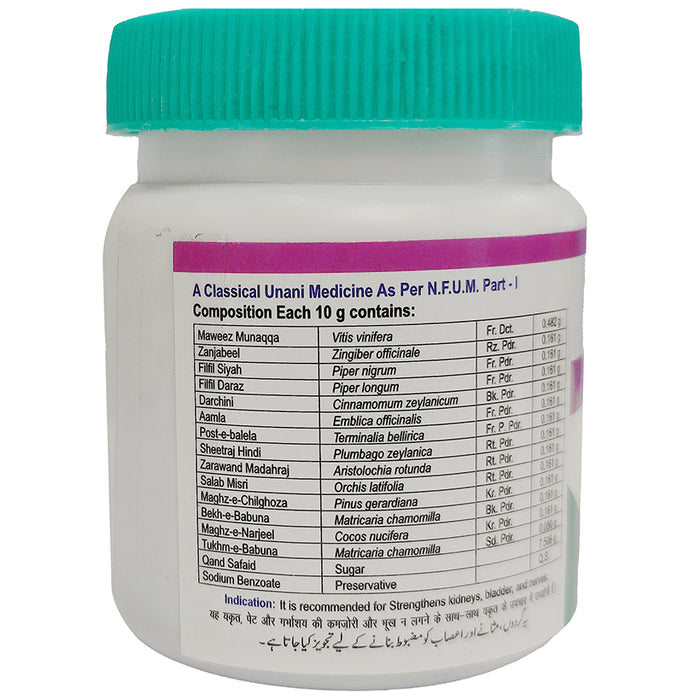 AL-Harmain Majoon-E-Falasifa is commonly used as a general health tonic, believed to rejuvenate the body and mind, restore energy levels, and promote overall well-being. It is carefully crafted from a blend of natural ingredients, meticulously selected for their therapeutic properties and efficacy in promoting health and well-being. The formulation typically comprises a combination of herbs, botanical extracts, and natural substances, each chosen for its specific health benefits. It is often recommended for individuals seeking natural solutions to support their health goals or address specific health issues in accordance with the principles of the Unani blend.