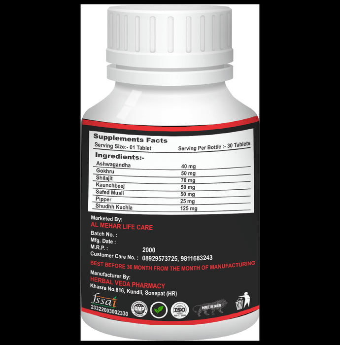 Composition : Shilajit,Jaiphal,Ashwagandha,Kalonji,Vidarikand,Jyotishmati,Safed musli,Gheekwar,Asgand nagori,Musli Siah