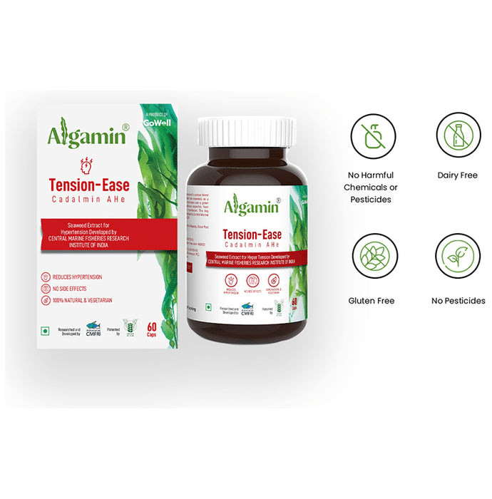 Algamin Tension-Ease Capsis a 100% natural capsule beneficial for cardiac and neural disorders. It strengthens the nervous system and helps manage stress by elevating the stress threshold. It helps control mild to moderate hypertension, high cholesterol and circulatory instability.