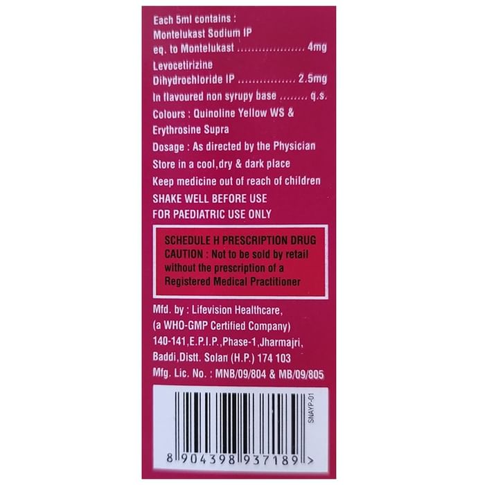 Composition : Levocetirizine (2.5mg/5ml) + Montelukast (4mg/5ml)