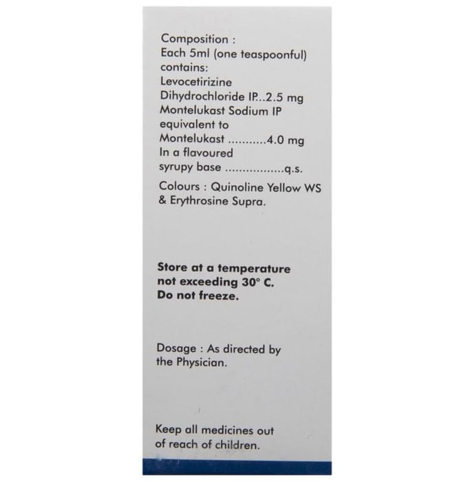 Composition : Levocetirizine (2.5mg/5ml) + Montelukast (4mg/5ml)