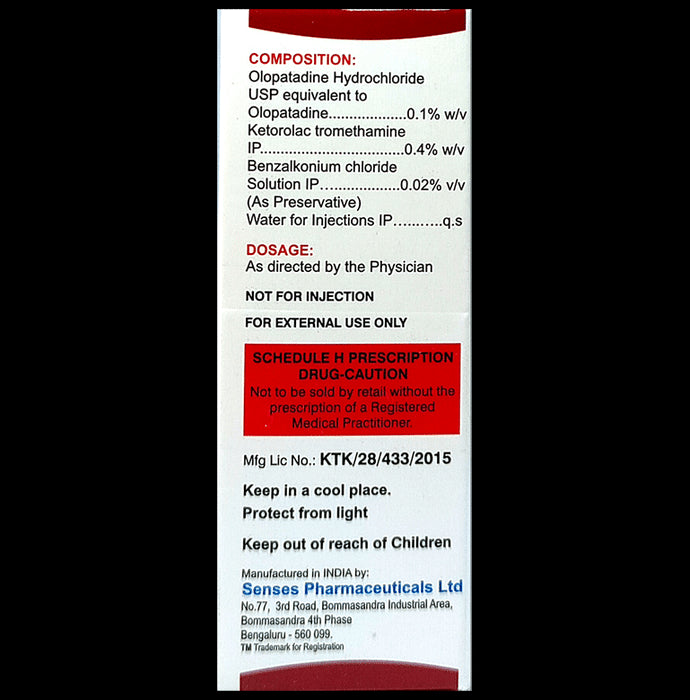Composition : Ketorolac (0.1% w/v) + Olopatadine (0.4% w/v)
