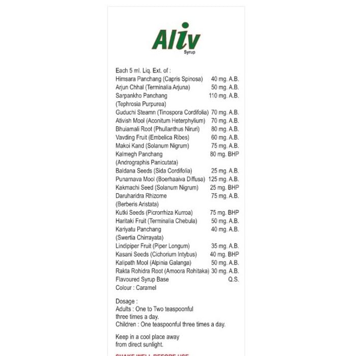 Alloes Aliv syrup for health and Protective Liver Tonic Syrup is a liver tonic with a blend of potent herbs that help enhance liver health. It helps strengthen a weak digestive system. This syrup does not cause any side effects.
