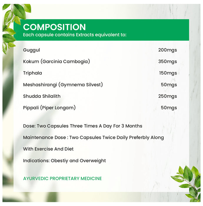 Composition : Guggul,Kokum,Triphala,Pipaapli,Sudha Shilalit