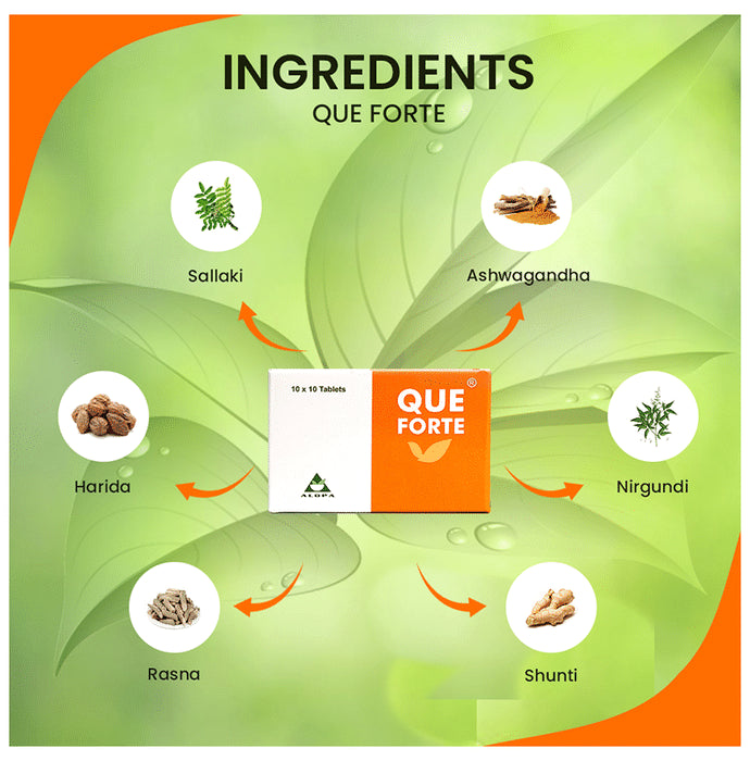 Alopa Que Forte Tablet for Anti Ageing & Stress Relief can effectively relieve stress, tiredness and retain memory. It helps rejuvenate the body's metabolism and also offers anti-ageing properties.
