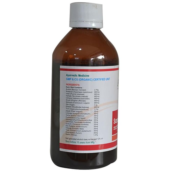 Alva's Saraswatarishta works as a health tonic enabling the body to function well. It also acts as a stress reliever, calming the mind. It is helpful in enhancing one's cognitive functioning.