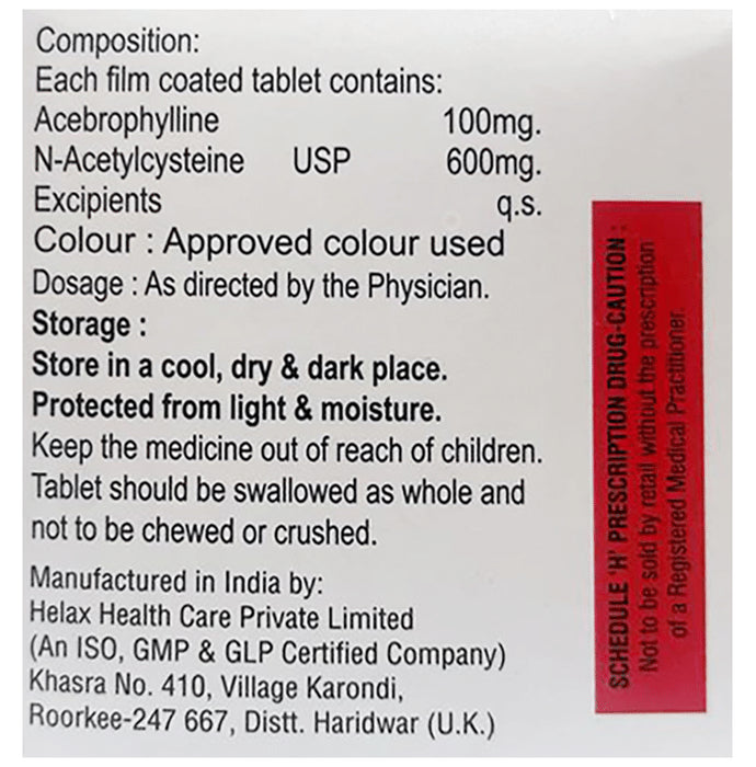 Composition : Acebrophylline (100mg) + Acetylcysteine (600mg)