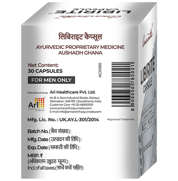 Amarantha Libirite Capsule brings you the goodness of ashwagandha and shvet musali. It is an Ayurvedic product that may support strength and stamina.