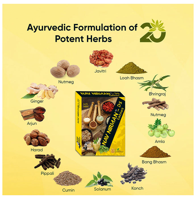 Ambic Nav Nirman-DS Tablet helps in gaining weight naturally. It is a formulation of ayurvedic herbs packed into a tablet that improves strength and stamina. It helps boost your athletic performance naturally. This powerful formulation is very beneficial for bodybuilders.