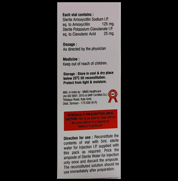Composition : Amoxycillin (125mg) + Clavulanic Acid (25mg)