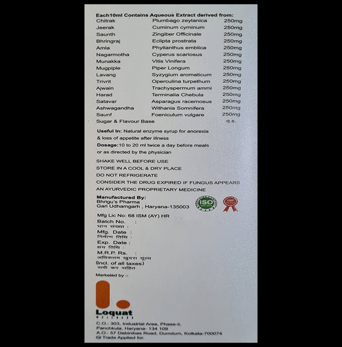 Composition : Chitrak,Jeerak,Saunth,Amla,Bhringraj,Nagarmotha,Munakka,Lavang,Ajwain,Harad
