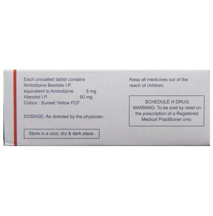 Composition : Amlodipine (5mg) + Atenolol (50mg)