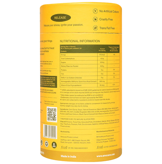 Composition : Corn Syrup, Sugar, Natural Sweetener Stevia (INS 960), Water, Gelling Agents (INS 440, 418, 407), Acidity Regulator (INS 300 & 331), Ashwagandha, Vitamin D, Strawberry Flavour, Food Colour, Black Carrot Concentrate (Daucus Carota Root Extract)