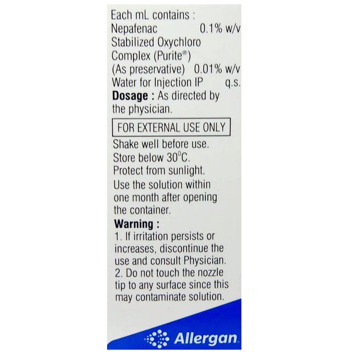 Amplinak Ophthalmic Suspension is a pain relieving medicine used to treat pain and inflammation associated with cataract surgery. It blocks and reduces the release of certain chemicals in the eye that cause pain and swelling. This makes the healing process after eye surgery more comfortable and helps the eye heal faster. Always wash your hands before using Amplinak Ophthalmic Suspension. Use only the number of drops that your doctor has prescribed and wait for about five minutes between each drop. If you wear contact lenses, remove them before using the drops and wait for at least 15 minutes before putting them back in. You should not touch the tip of the dropper or bottle. This may lead to infection.Use of the medicine may cause decreased vision, foreign body sensation in the eyes, and increased intraocular pressure. These are usually temporary and resolve with time. However, if they persist or get worse, you should let your doctor know. Your doctor may be able to suggest ways of preventing or reducing the symptoms.Before using this medicine, you should tell your doctor about all the other medicines you are taking. You should also tell your doctor if you have any other medical conditions or disorders. Pregnant and breastfeeding women should consult with their doctors before using the medicine.