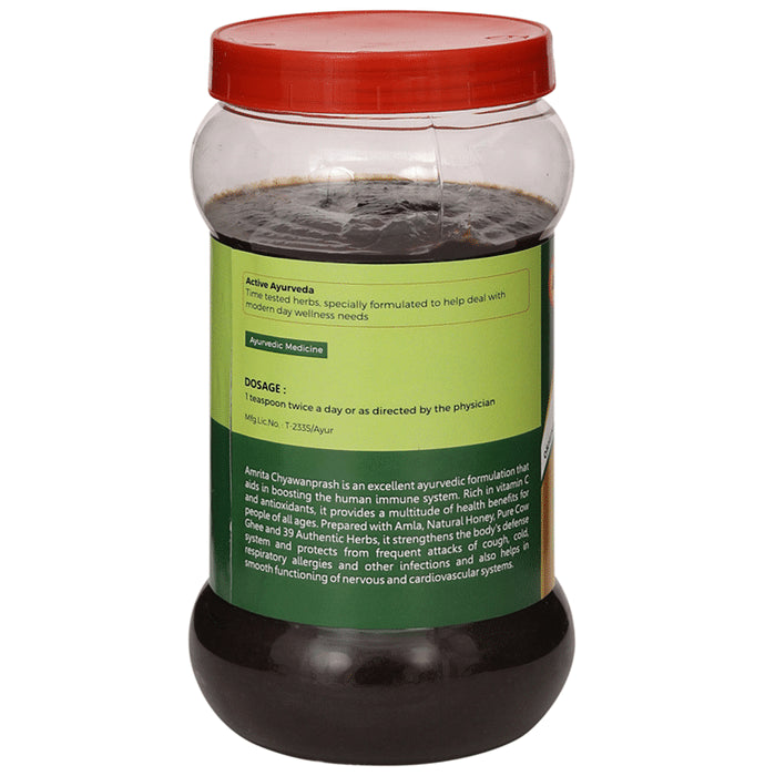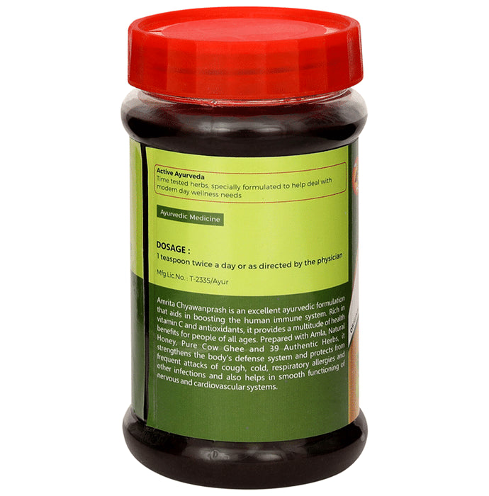 Amrita Chyawanprash is made from fresh amla, pure honey and other vital ayurvedic herbs. It contains antioxidant properties and helps strengthen the body's immune system, thereby protecting from common cold, coughs, respiratory allergies and other infections. It helps in the smooth functioning of the nervous and cardiovascular systems