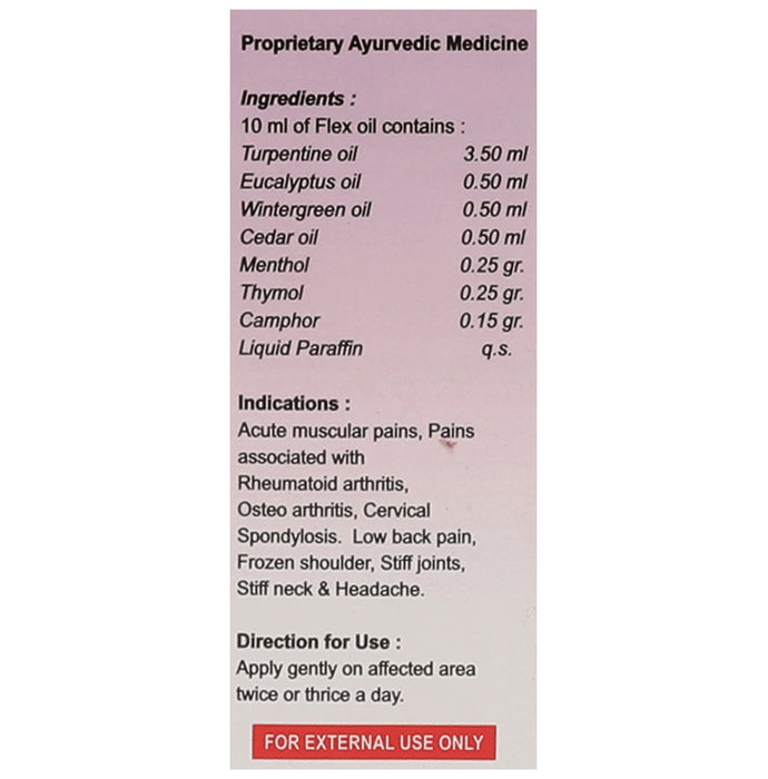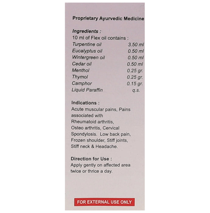 Amrita Flex Oil is a proprietary Ayurvedic formulation that may help provide sustainable pain relief. It may also provide relief from knee pain, back pain, muscle fatigue and pain, and joint pains.