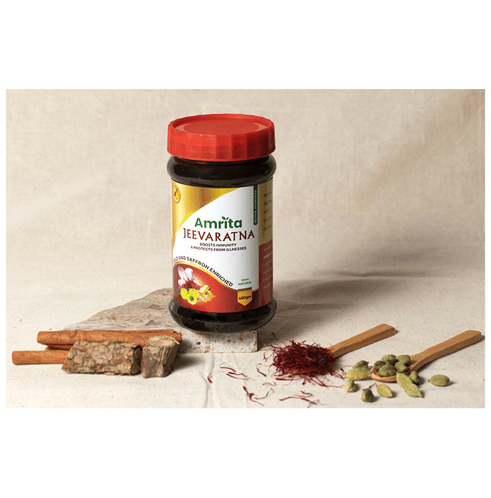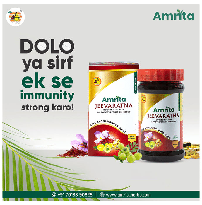 Amrita Jeevaratna is an Ayurvedic formulation with amla, honey, cow ghee and 39 authentic herbs that helps boost immunity. It helps strengthen the body’s natural defence mechanism.
