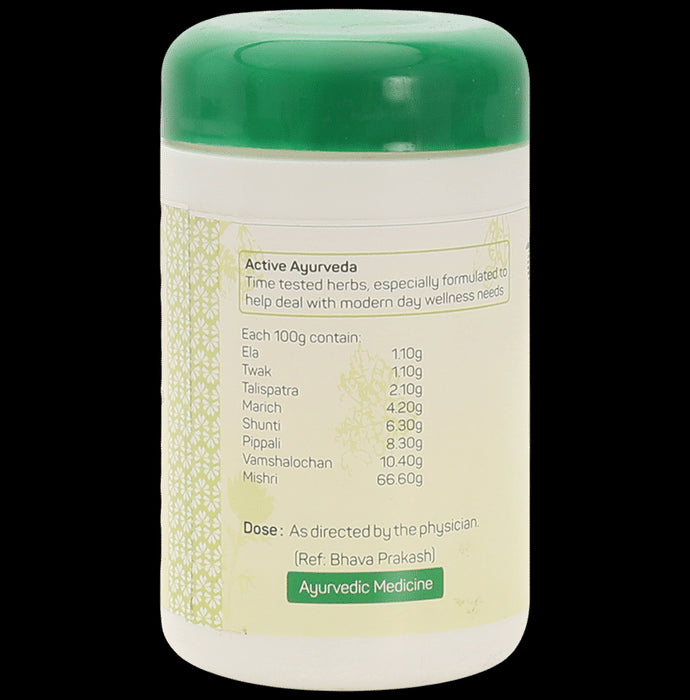Composition : Ela, Twak, Talispatra, Marich, Shunthi, Pippali, Vamshalochana and Mishri