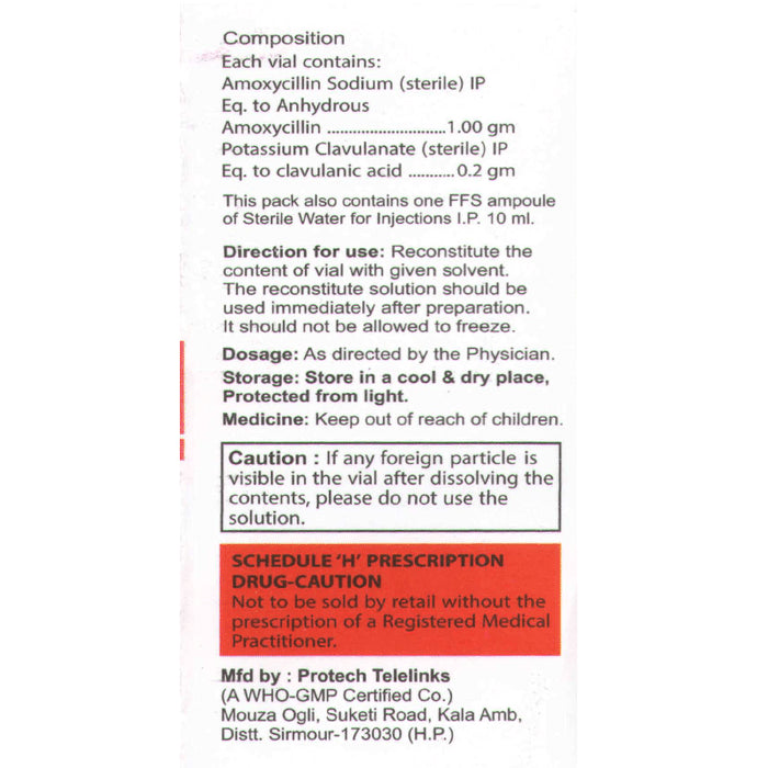 Composition : Amoxycillin (1000mg) + Clavulanic Acid (200mg)
