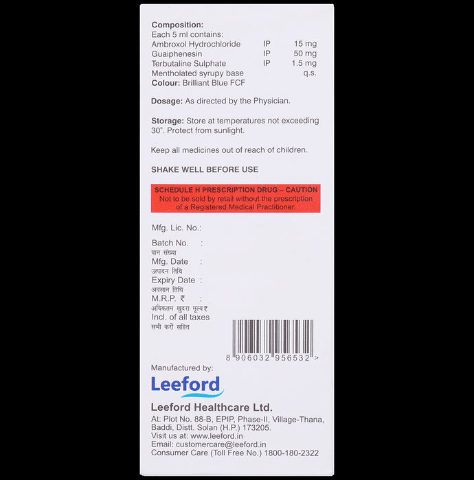 Composition : Ambroxol (15mg/5ml) + Guaifenesin (50mg/5ml) + Terbutaline (1.5mg/5ml)