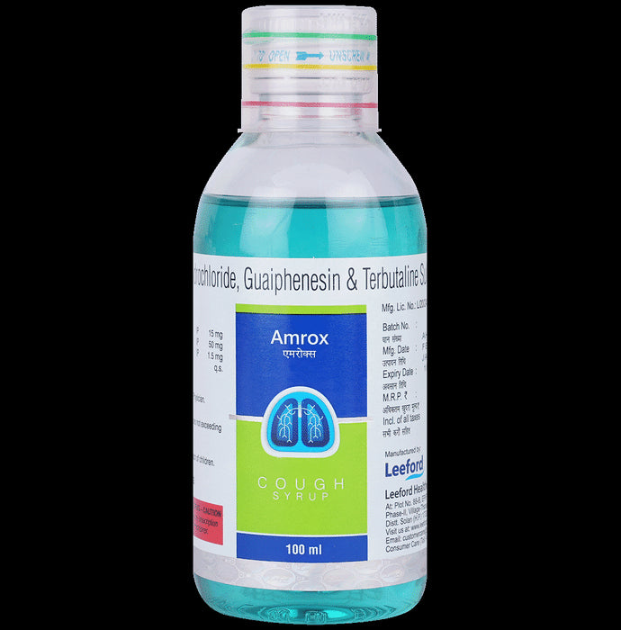 Amrox Syrup effectively treats wet cough (cough with mucus) in children. It helps in thinning the mucus by increasing its water content. This relieves throat irritation and clears congestion, enabling easy breathing in your child. Give Amrox Syrup to your child orally, with or without food. Give it with food to reduce the chances of stomach upset. You may be required to give this medicine to your child for a few days to weeks, depending upon your child’s clinical condition and severity of the illness. Do not stop the medication abruptly by yourself, even if your child starts to feel better. Continue the medicine until the prescribed course is complete. Do not give more than the prescribed dose for fast relief as it may cause unwanted effects and worsen your child’s condition.If your child vomits soon after taking Amrox Syrup, help the child calm down and repeat the same dose. Skip the dose if it is time for the next dose. Do not overdose to catch up for the missed one. Do not give this medicine to your child for the long term without consulting your child’s doctor. Check the medicine label thoroughly and never combine this medicine with other cold and flu medicines as that may lead to side effects.Amrox Syrup may have some common and temporary side effects. These may include excessive salivation, fatigue, headache, dizziness, nausea, vomiting, diarrhea, stomach discomfort, irregular heartbeat, rash, tremors, and numbness or tingling sensation in the hands or feet. In case of worrisome episodes, call your child’s doctor right away.Narrate your child’s complete medical history, including any previous episode of respiratory illness, allergy, heart problems, blood disorders, birth defects, airway obstruction, lung anomaly, sinus issues, liver impairment, and kidney malfunction. This information is critical for dose alterations and for planning your child’s overall treatment.
