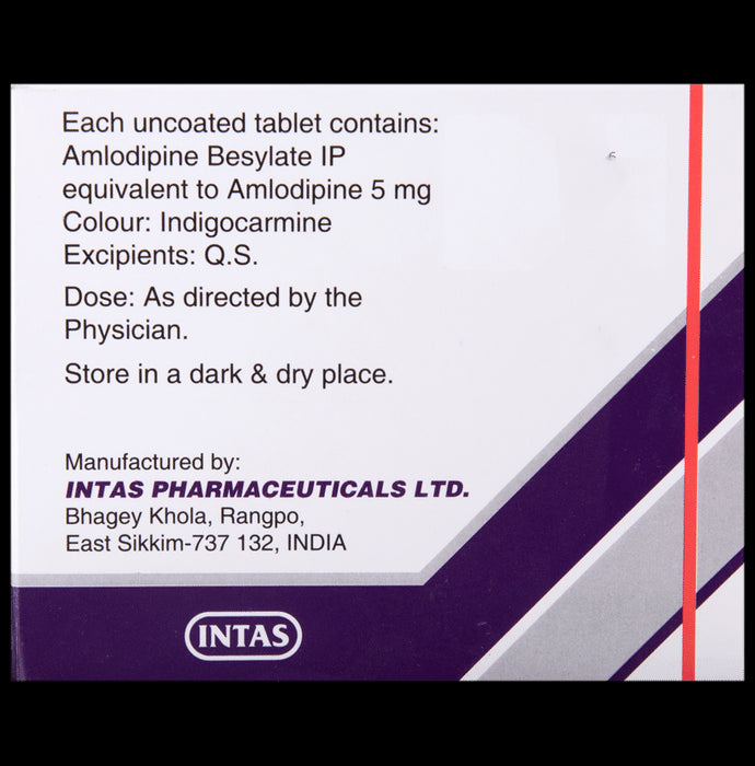 Amtas 5 Tablet belongs to a class of medicines known as calcium channel blockers. It is used to treat high blood pressure (hypertension) and prevent angina (heart-related chest pain). It lowers blood pressure and reduces the heart's workload, which helps prevent heart attacks and strokes. Amtas 5 Tablet may be prescribed alone or along with other medicines. The dose depends on what you are taking it for and the severity of your condition. You can take it at any time of the day, with or without food, but it is best to take it at about the same time each day. You should take this medicine for as long as it is prescribed for you. Even if you feel well, do not stop this medicine on your own because high blood pressure often has no symptoms. If you stop taking it, your condition may get worse. Keeping yourself active with regular exercise, managing your weight, and eating a healthy diet will also help control your blood pressure.The most common side effects include headache, edema, fatigue, nausea, abdominal pain, and somnolence. Consult your doctor if any of these side effects bother you or do not go away. They may be able to suggest ways to prevent or reduce the side effects. There has been reports of lichenoid keratosis (a benign, inflamed, solitary skin lesion, typically brownish or reddish, found on sun-exposed areas) in some patients taking Amtas 5 Tablet, if you experience this, let your doctor know.Before taking it, let your doctor know if you have any liver, heart, or kidney problems. Pregnant or breastfeeding women should also consult their doctor before taking this medicine. You also need to tell your doctor about all the other medicines you are taking, especially those used to treat high blood pressure or heart conditions. You should have your blood pressure checked regularly to make sure that this medicine is working properly.