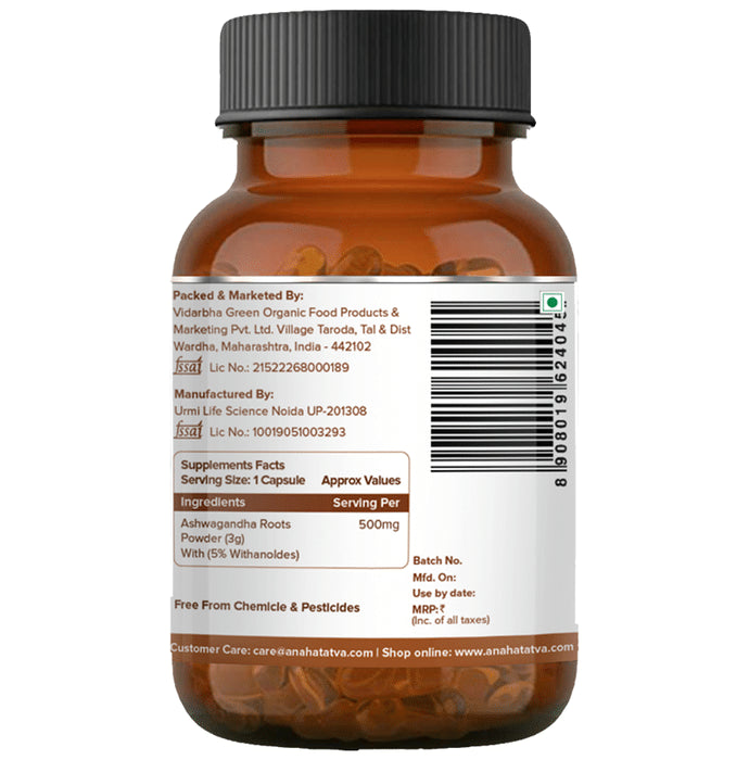 Anahatatva Natural Ashwagandha Veg Capsule is a plant-based formulation with organic herbs that can help reside stress and anxiety and rejuvenate the mind and body. It may aid in building strength and stamina.
