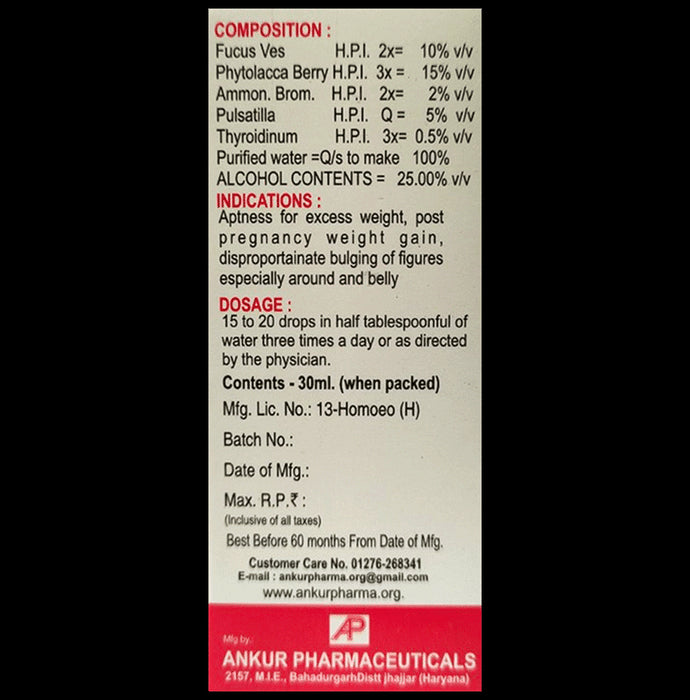 Ankur Phyto Drop is an effective homoeopathic formula to support healthy weight management. It also affects post-pregnancy weight gain and disproportionate bulging of figures, especially around the hips and belly.